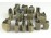 14 darab faragott keményfába illesztett réz iniciálés betűkkel és különböző növényi motívumokkal díszített kékfestő nyomóminta, pecsételő különböző méretekben egy csomagban.