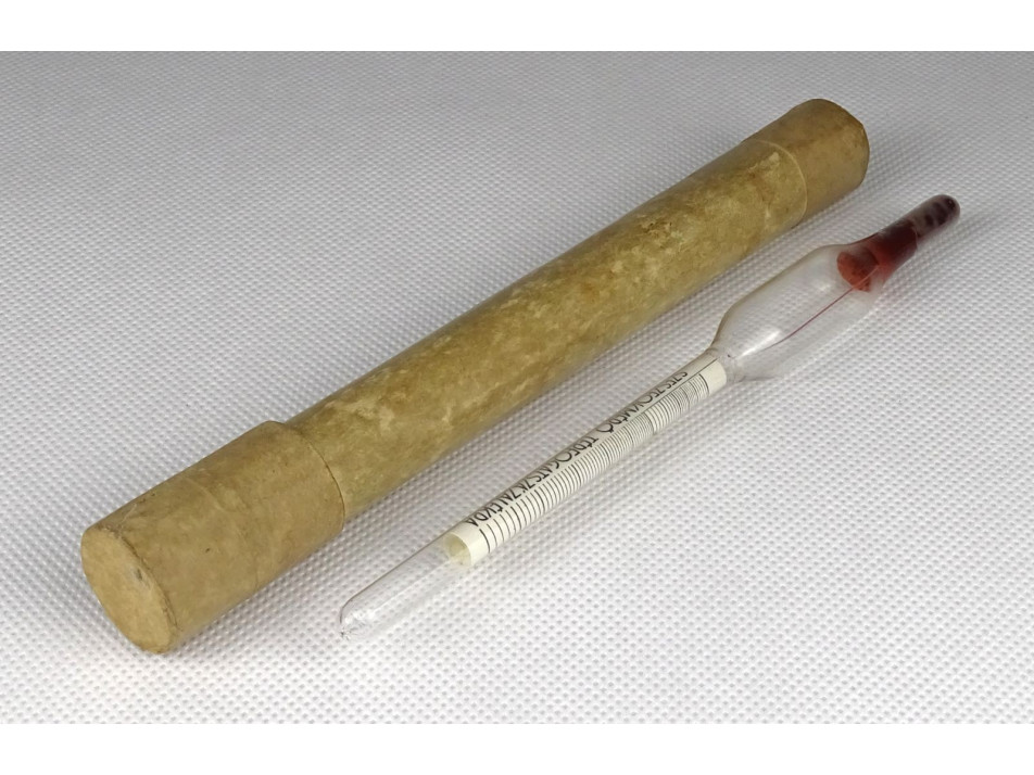 Eredeti dobozában, tokjában található, skálázott borászati eszköz, borfokoló.
