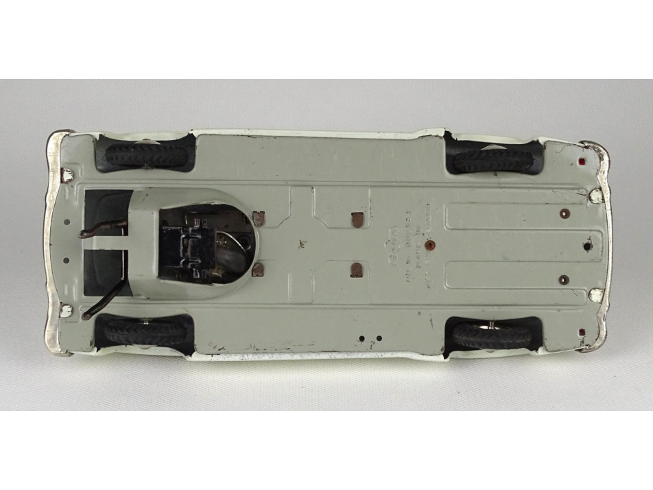 Régi, fémből készült, játékautó, rendőrautó eredeti dobozában. Kettő darab 1.5V R14-es "baby" elemről működik. Az autó jelenleg nem működik. Rendeltetésszerűen faltól-falig, akadálytól akadályig közlekedik miközben a rendőr feje körbe forog.