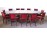 Az asztal egy a belsejéből kihajtható szín azonos betéttel (61 cm) és kettő darab fenyő betétlappal (2 x 33.5 cm) rendelkezik.A székek epedarugósak, kényelmesek, kárpitjuk egységes bordó színű.