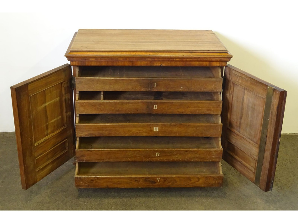 Antik 5 fiókos ónémet grafikai tároló komód
