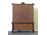 Gyönyörű, nagy méretű, antik, két részből álló faragott bútor, vadász mintás fegyvertartó állvány. Alsó része függönnyel eltakart zárható üveges tároló, felső része akasztókkal rendelkező felület. Fent középen faragott tölgyfaleveles nemesi címerpajzsos díszítés látható. Rajta monogram: B.D.