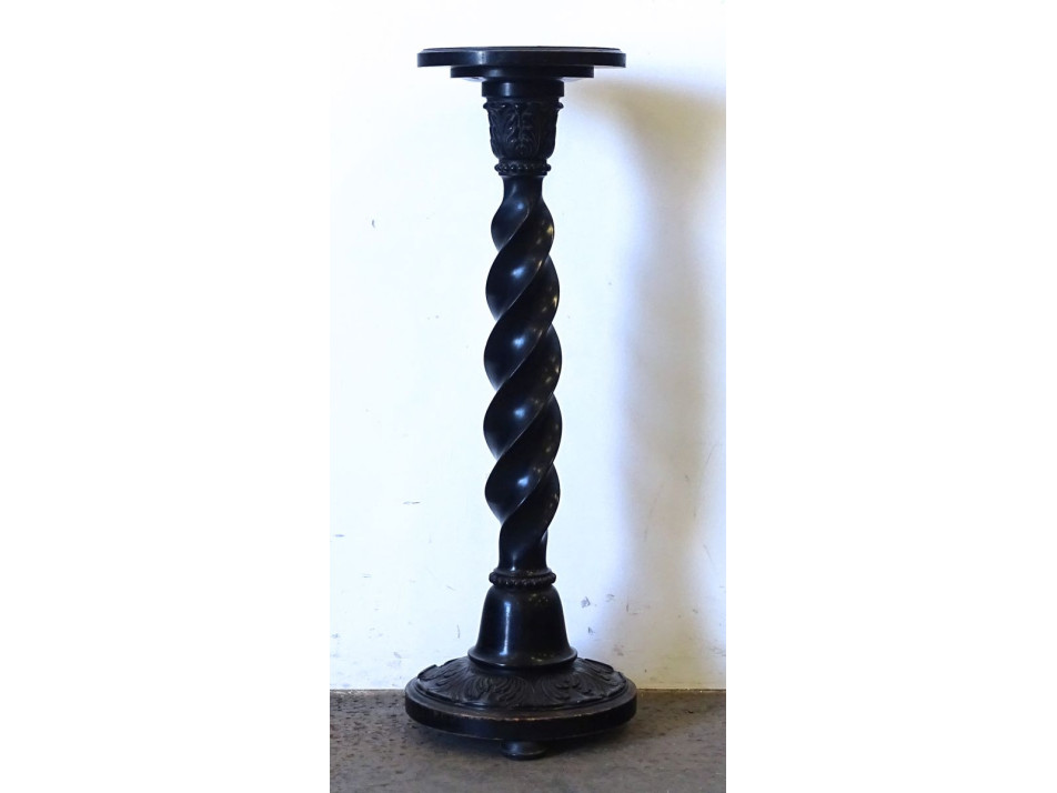 Antik faragott csavart oszlopos nagyméretű fekete virágállvány posztamens 102 cm