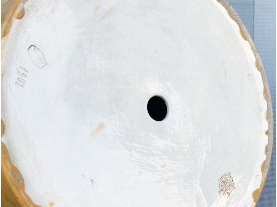 Hibátlan állapotú, jelzett, antik majolika szobortartó állvány, posztamens az 1800-as évekből.