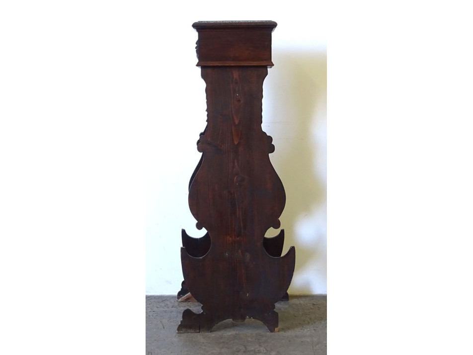 Régi, nagy méretű gazdagon faragott nagy méretű szobortartó állvány. Nem szimmetrikus. Egyik oldala díszített, a másik nem.