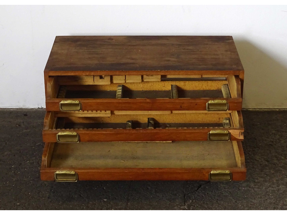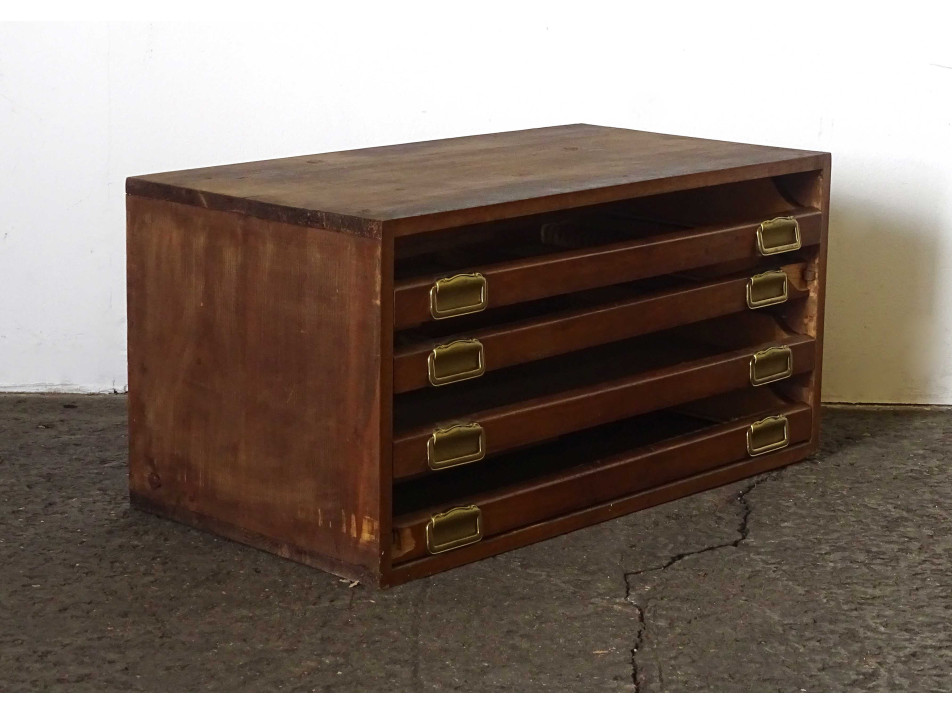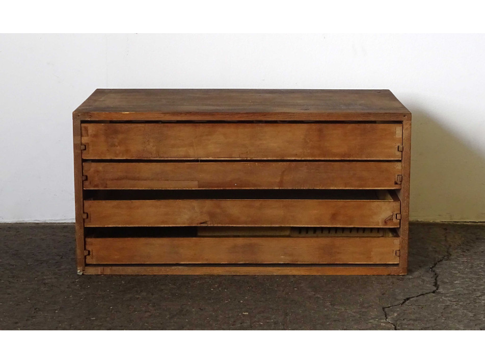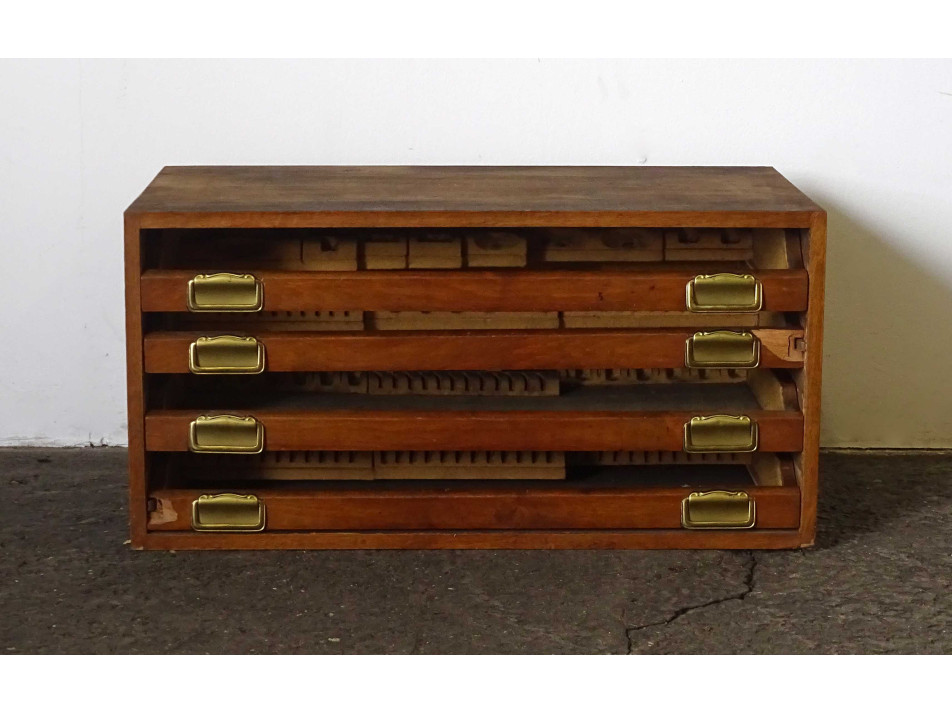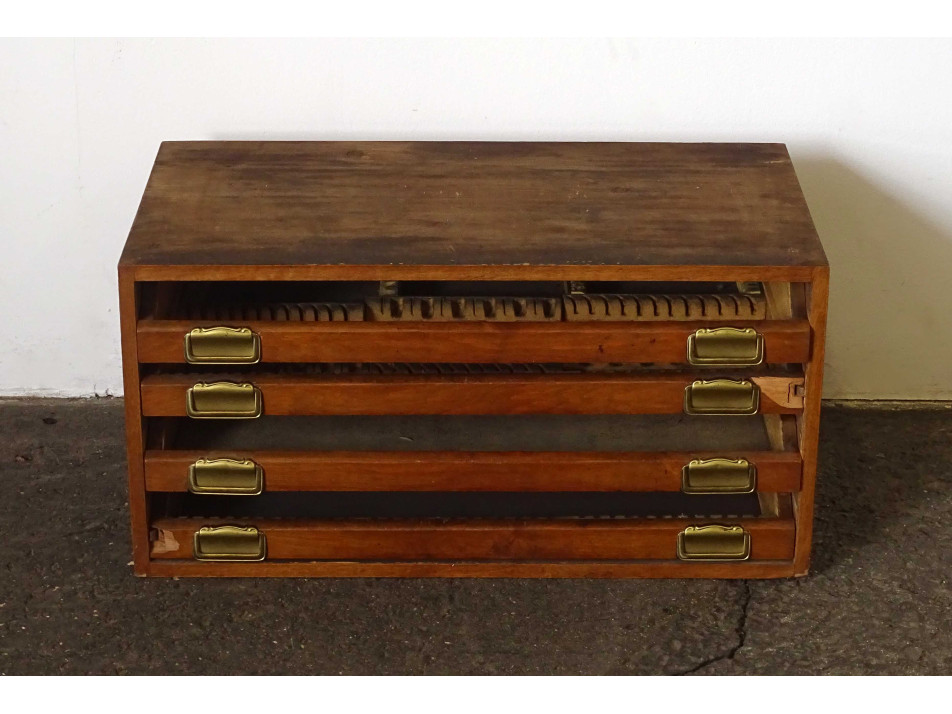 Régi négy fiókos fa evőeszköz tároló kis szekrény