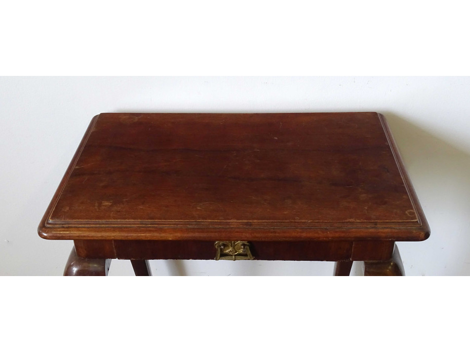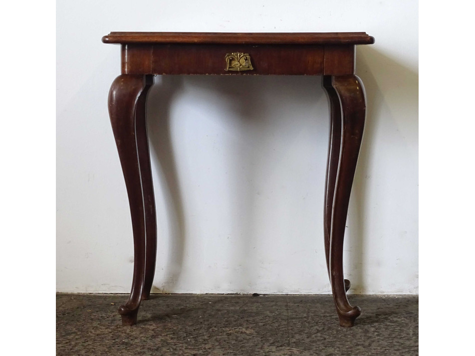 Régi, kis méretű neobarokk asztal, íróasztal, fiókos asztal. Fiókján díszes, fogantyús verettel.