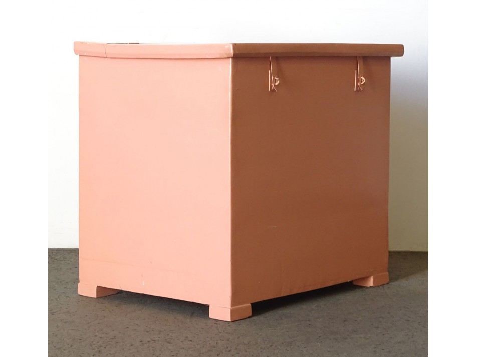 Szép állapotú, felújított, újrafestett, nagyméretű rózsaszín ruhás láda. Fenyőfából készült hozományláda.