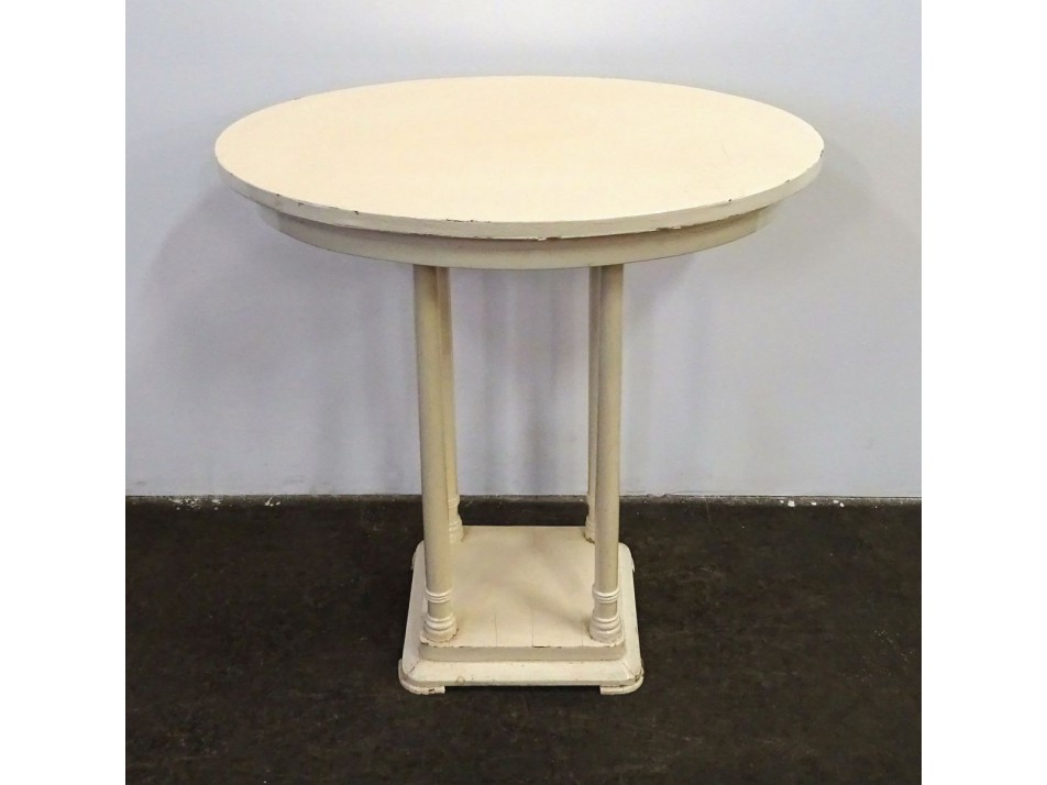 Szép állapotú, régi fenyőfából készült fehérre festett, stabil kis asztal. Ovális alakú szecessziós szalonasztal, lerakó asztal.