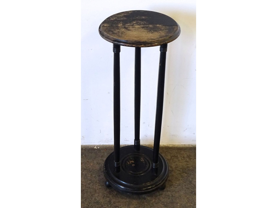 Antik fekete színű háromoszlopos szobortartó posztamens vagy virág tartó állvány. Kissé kopottas.