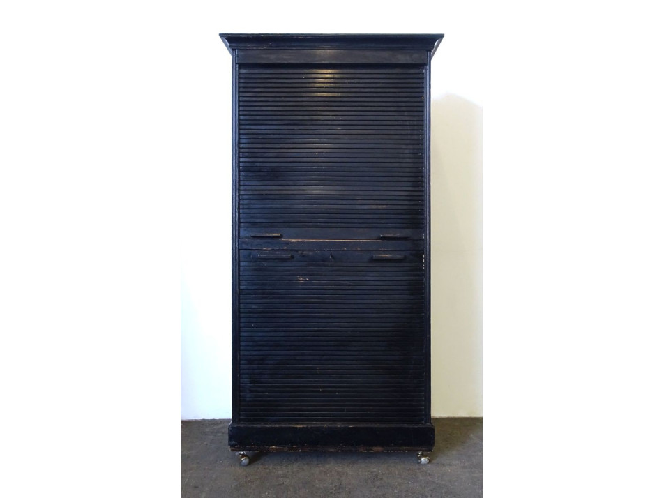 Antik nagyméretű, sokfakkos, 28 fiókos szecessziós rolós irattartó szekrény az 1900-as évek elejéről. Működő zárral, egy kulccsal rendelkezik. A szekrény alján görgők találhatók, nehezen gurul.