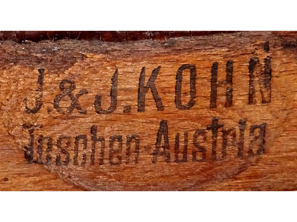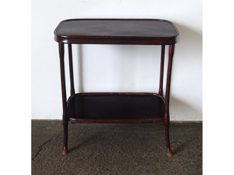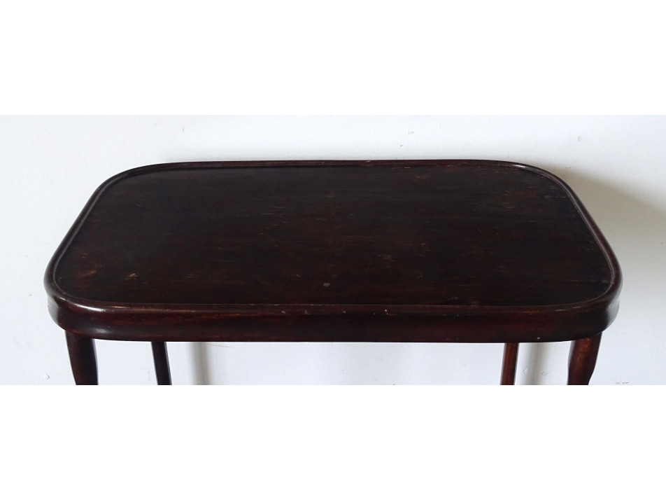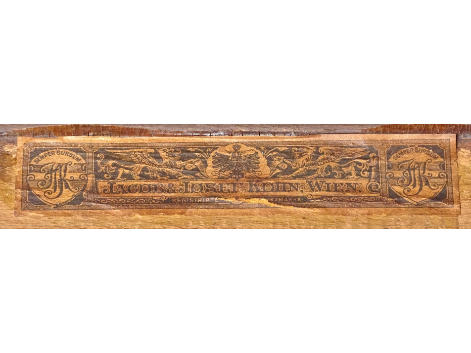 Antik, jelzett bécsi JACOB & JOSEF KOHN WIEN hajlított lábas asztal, kisasztal. Az asztal alján címke és égetett jelzés is található. Lásd fotó.