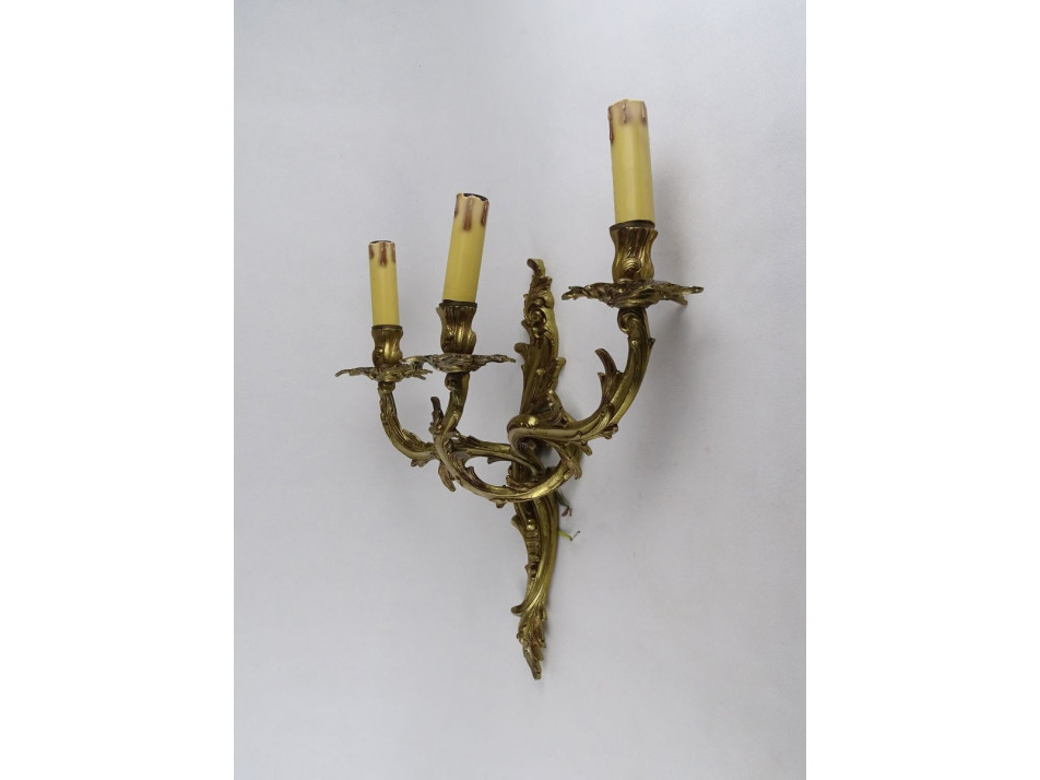 Hibátlan állapotú gyertyaégős réz falikar. A karok gyertyákban végződnek, három darab kisméretű (E14) izzó való bele. Működik. Azonnal enteriőrbe helyezhető állapotban van.