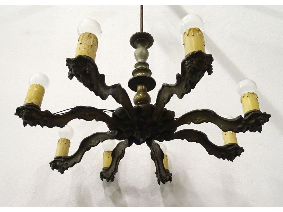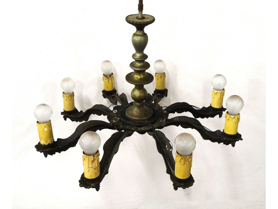 Régi nyolckarú bronzírózott csillár 110 x 78 cm