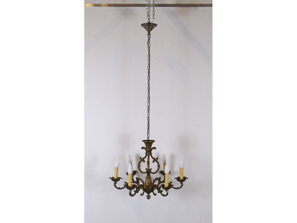 Hibátlan, működőképes állapotban lévő, hatkaros réz csillár. A karok gyertyákban végződnek, kisméretű (E14) izzók valók bele. A csillár hosszú láncon lóg, ez szükség szerint rövidíthető.