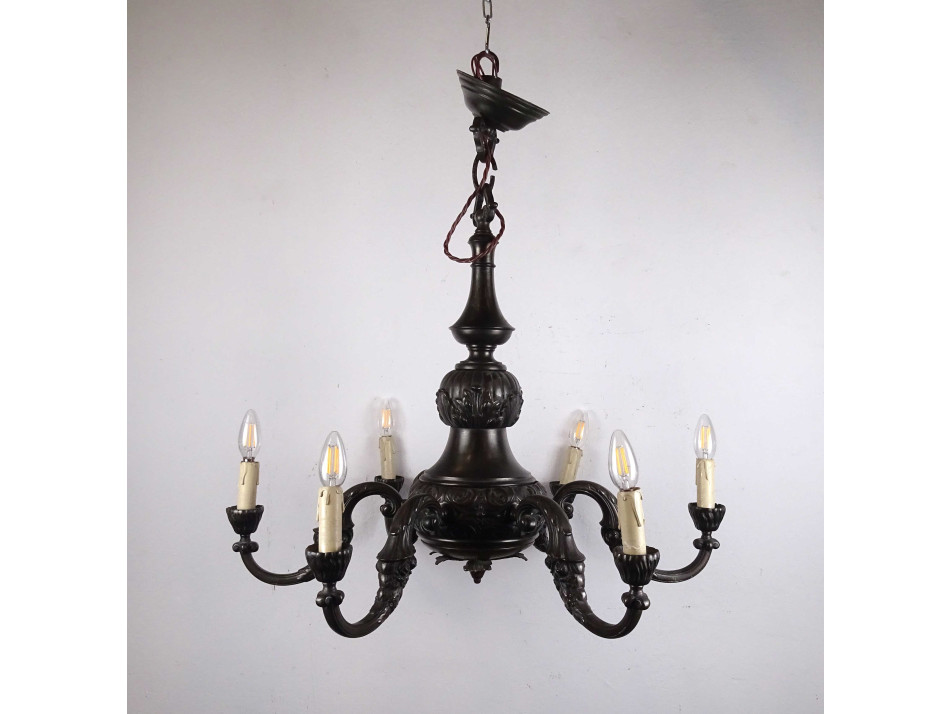 Antik 6 karú, bronz csillár 78 x 75 cm