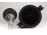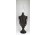 Antik öntöttvas testű nagy méretű, urnaváza alakú petróleumlámpa üveg cilinderrel. A levehető tető alatti üveg tartályrész hiányzik. A lámpa egy fekete márványtalapzaton áll.