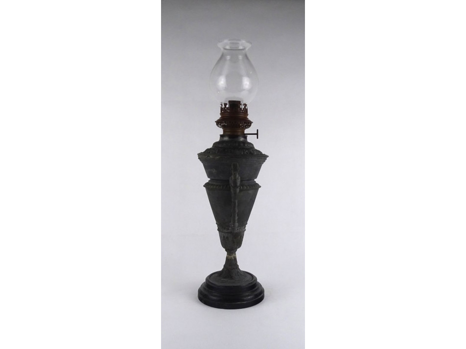 Antik, nagyméretű jelzett bécsi fém petróleum lámpa fekete márvány talapzaton. Kiemelhető tartályrésszel, réz fejjel és hibátlan üveg cilinderrel rendelkezik.