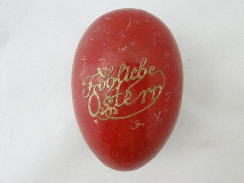 Régi német papírmasé feliratos tojás, csokitartó, drazsé tartó kisdoboz.