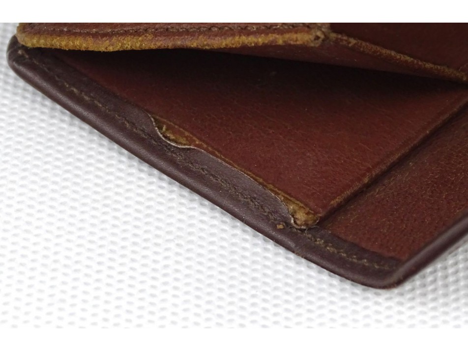 Régi, kis méretű bőr háromfakkos pénztárca. Sarkain szecessziós fém díszítés található.. Állapota közepes, korának megfelelő.