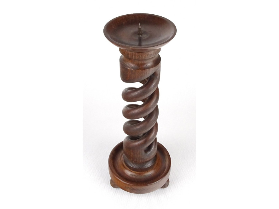 Régi csavart testű fa gyertyatartó 25.5 cm