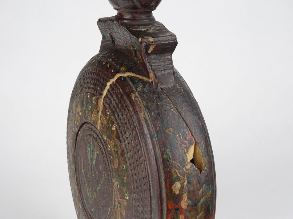 Antik faragott festett fa kulacs 24.5 cm