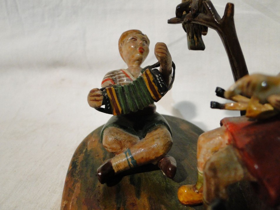 Több darabból álló, kézi fafaragással készített gyerekjáték nipp.