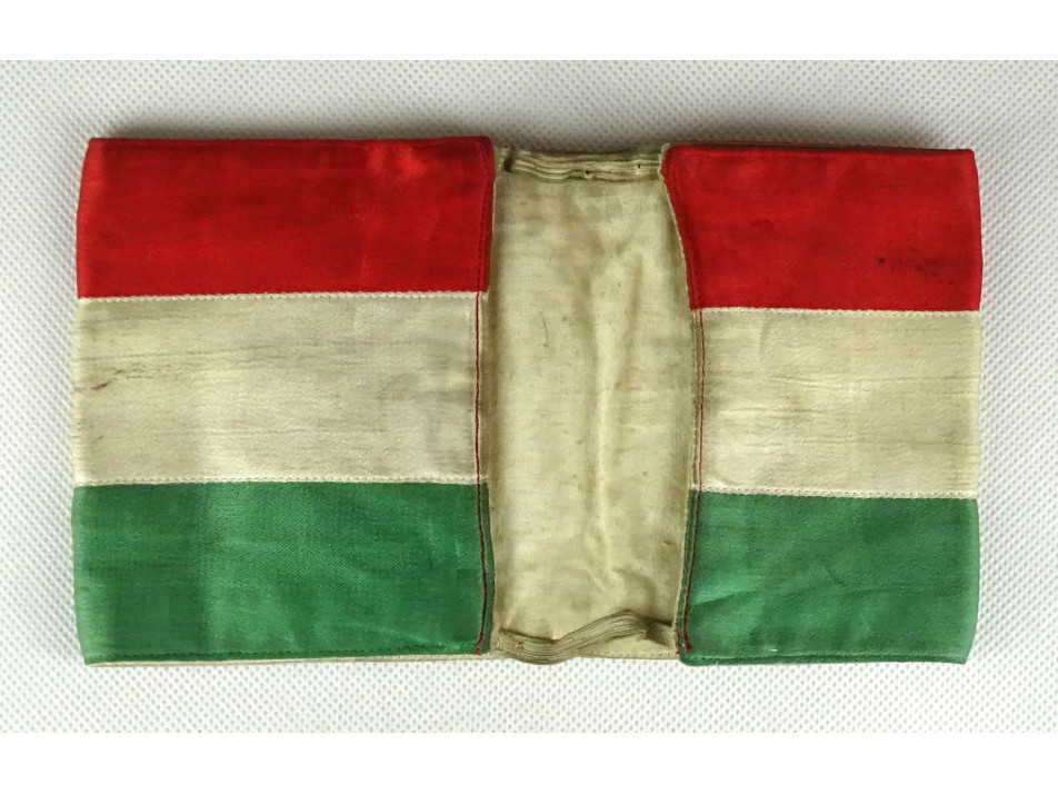 Magyar Motorsport Szövetség (MMSZ) karszalag. Selyem trikolor sávok között vörös csillag, Kossuth címer.