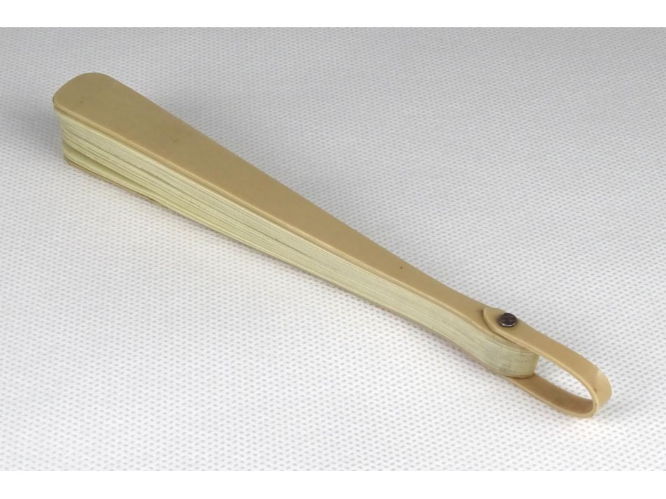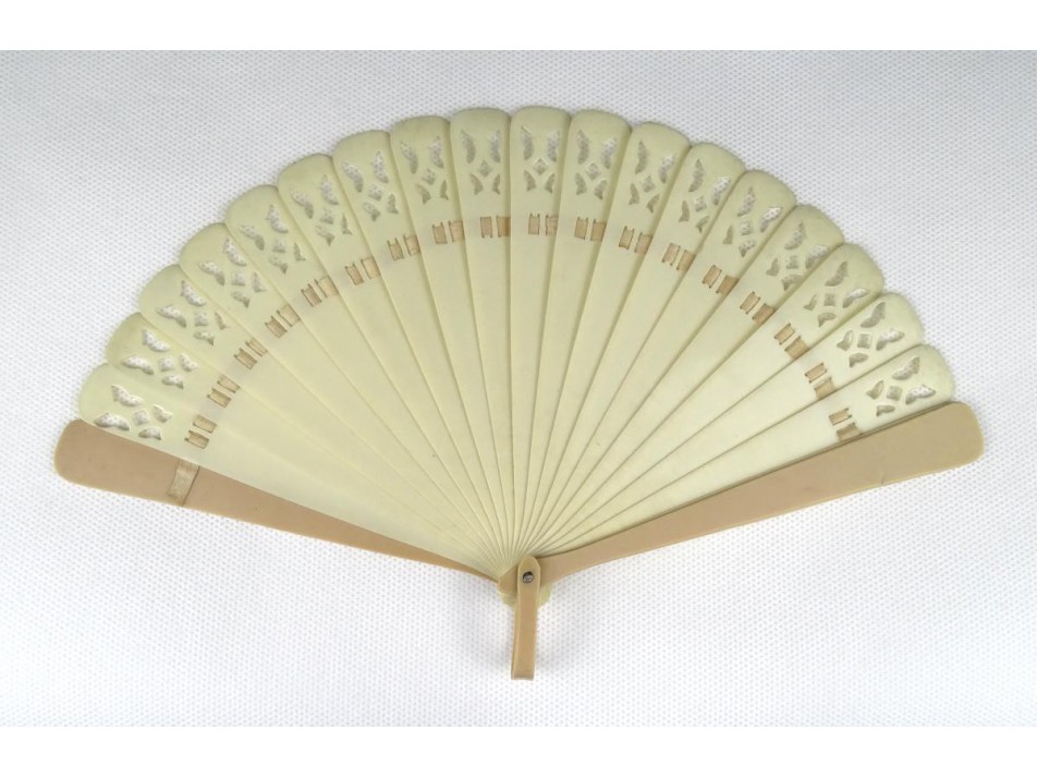 Régi, szép állapotú kis méretű legyező, gazdagon díszített, áttört huszonegy tagos, legyező.