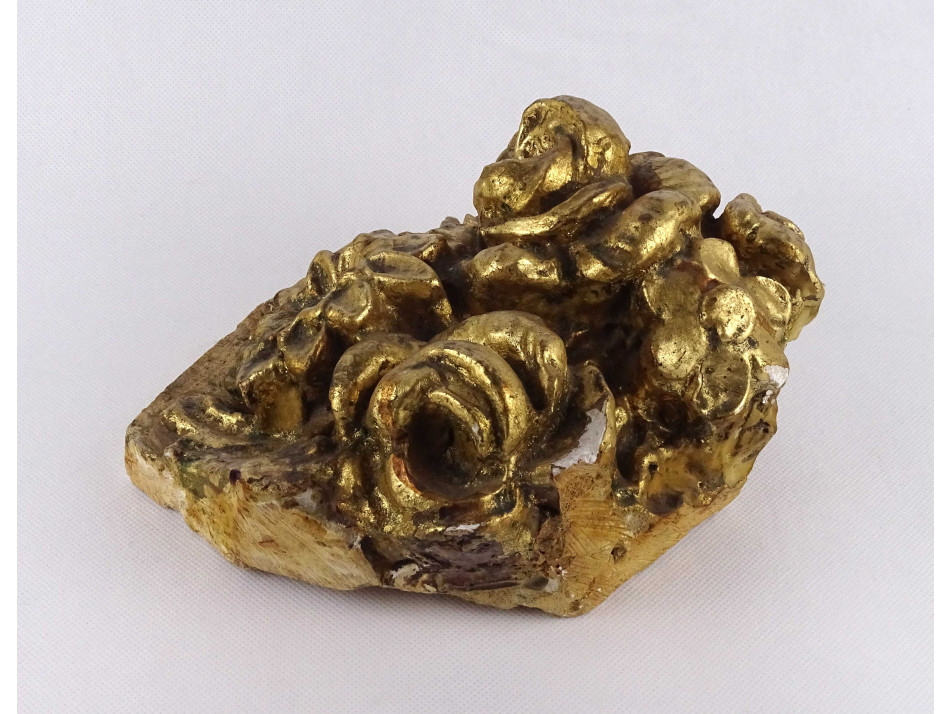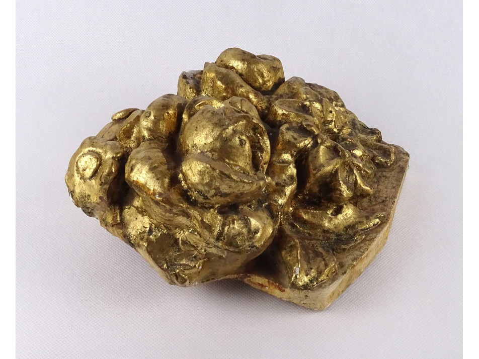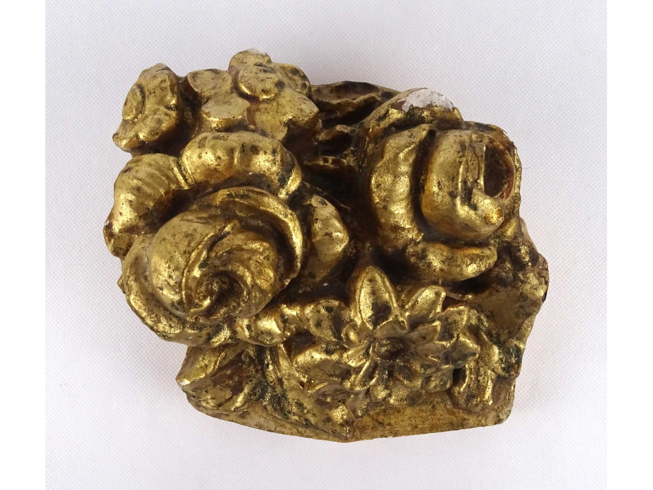 Antik, barokk virágcsokrot, virágokat ábrázoló épületdísz töredék, gipsz stukkó. Eredeti festése, laparanyozása itt - ott kopottas, de így is látványos, dekoratív darab.