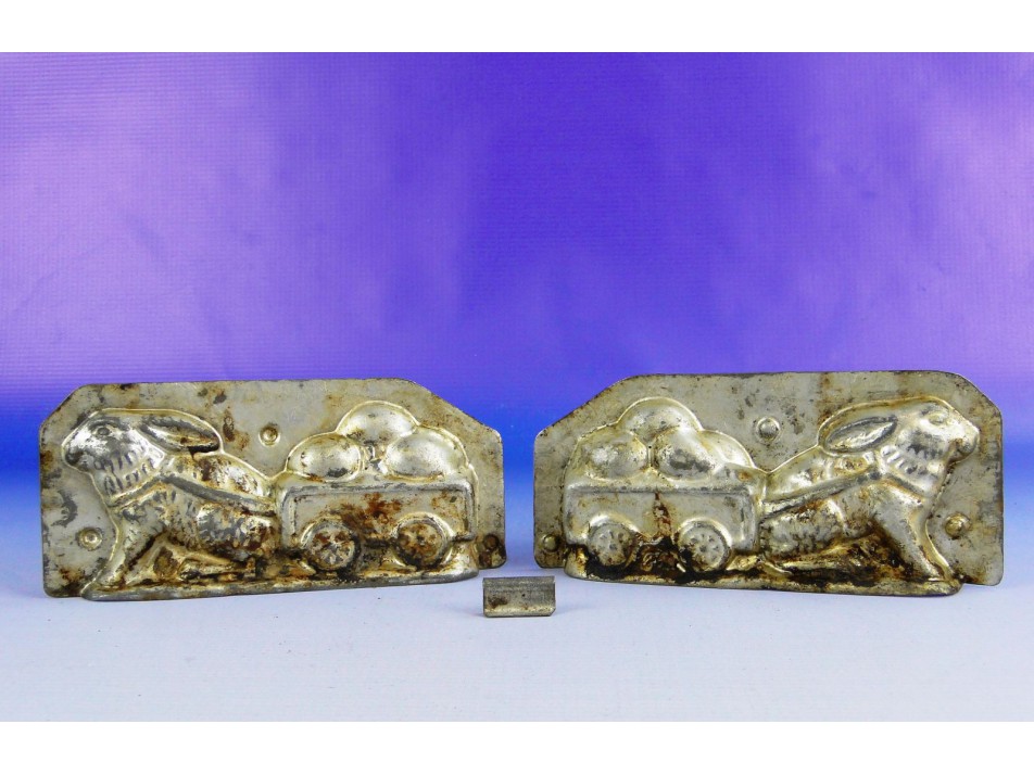 Antik kis méretű húsvéti nyuszi alakú csoki öntő forma, cukrászati eszköz.