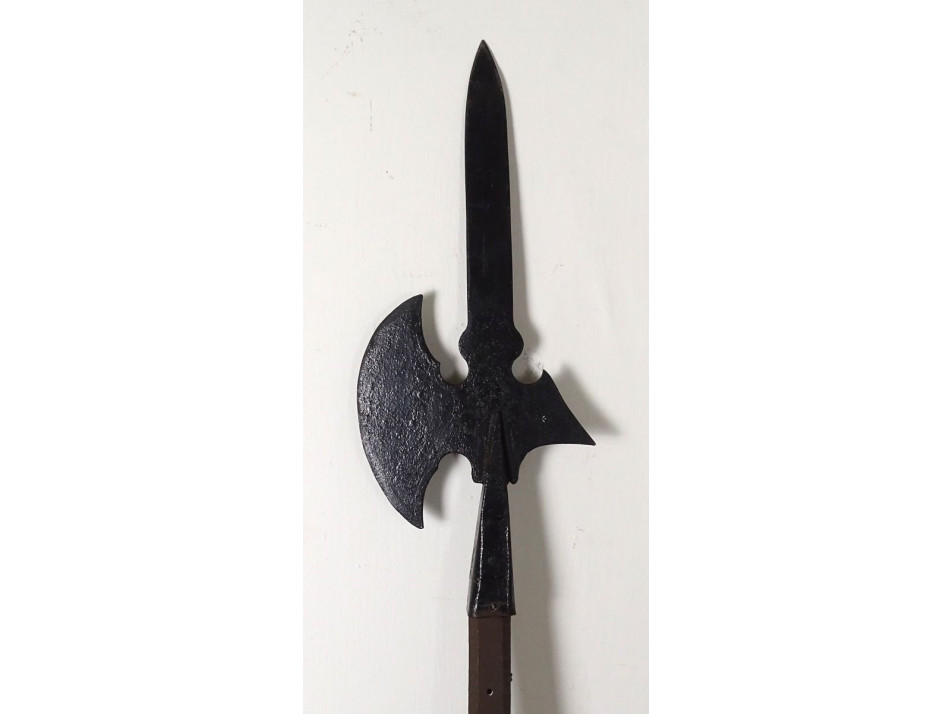 Az alabárd feje feketére festett, alatta halvány mintázat kivehető. Rajta csillag szerű jelzés látható.