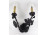 Régi levéldíszes kovácsoltvas falikar. A karok papírmasé gyertyákban végződnek. Kis méretű (E14) izzó való bele. Újravezetékelése szükséges.