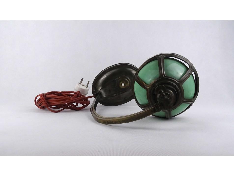 Antik sárgaréz lámpa, asztali lámpa, a talpába épített kapcsolóval, működő állapotban, régi földeletlen dugvillával.