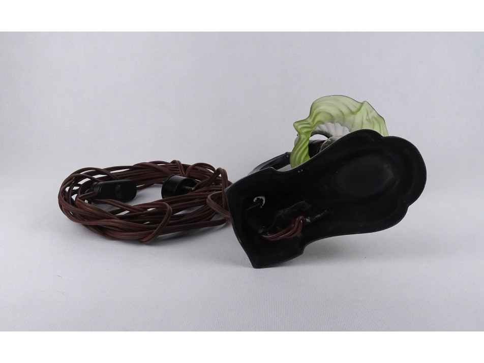 Antik réz testű, tulipánbúrás lámpa, asztali lámpa esetleg falikar működő állapotban, régi földeletlen dugvillával.