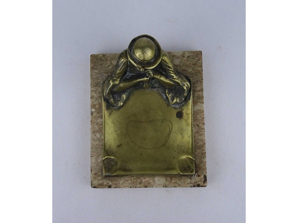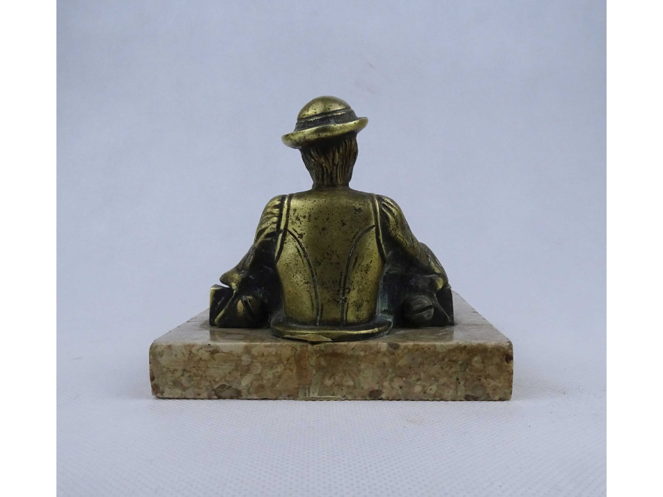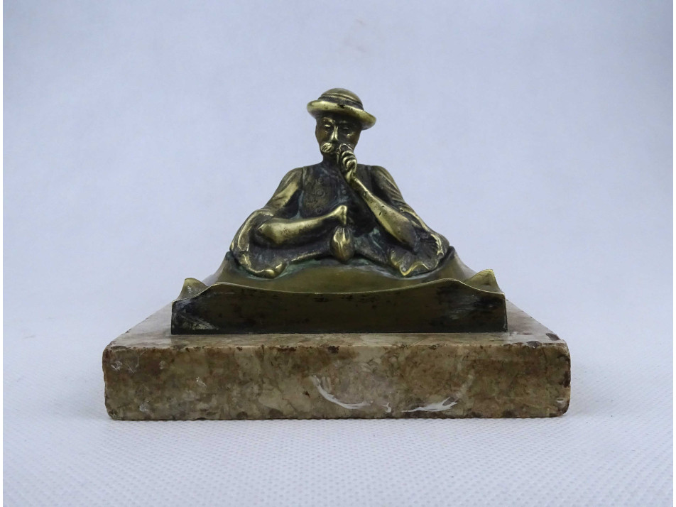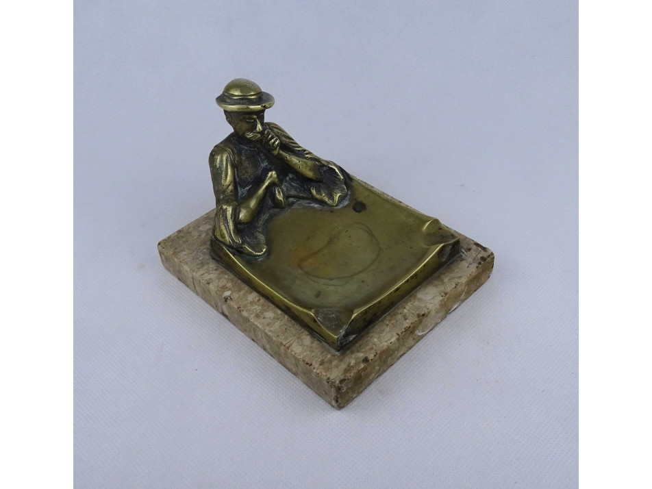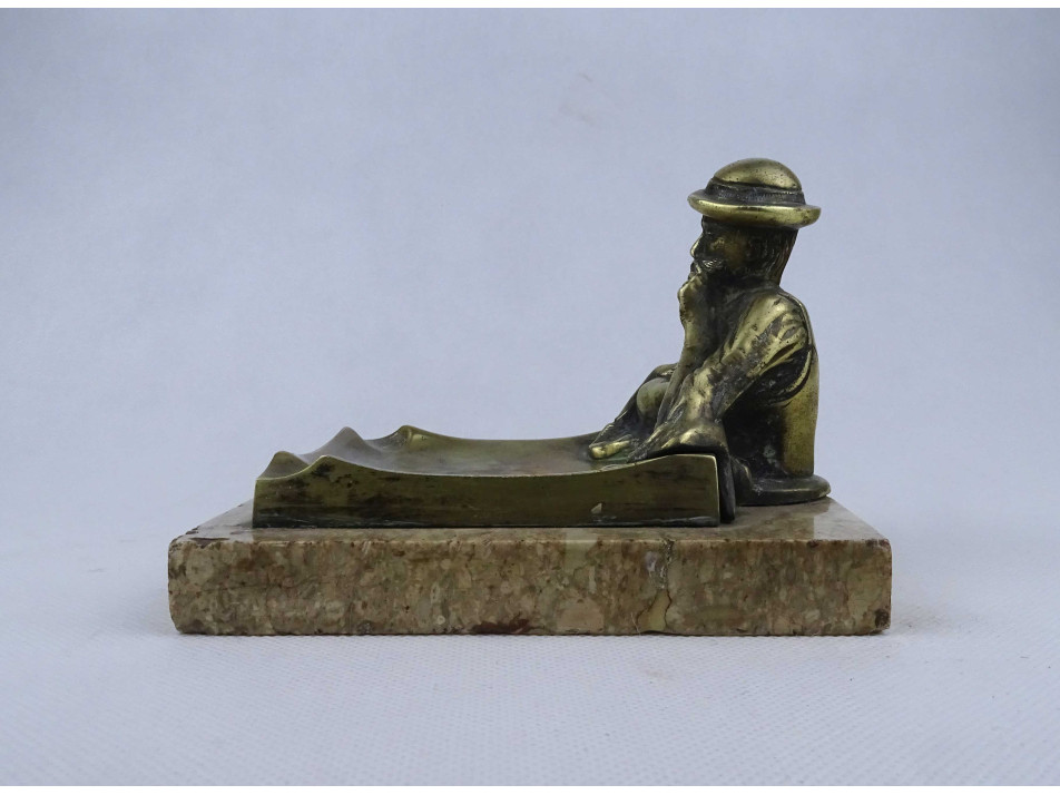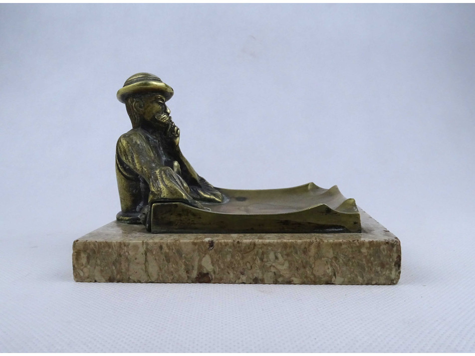 Antik paraszt gazdát ábrázoló bronz szobros hamutál márvány talapzaton