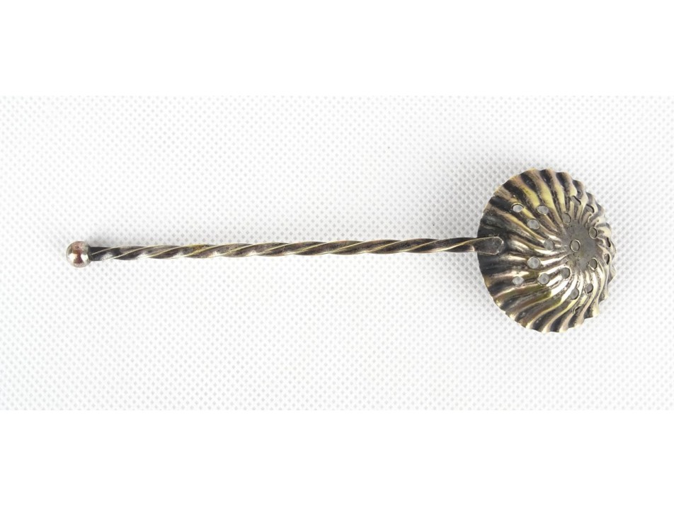 Antik ezüstözött réz teaszűrő kanál 12.5 cm