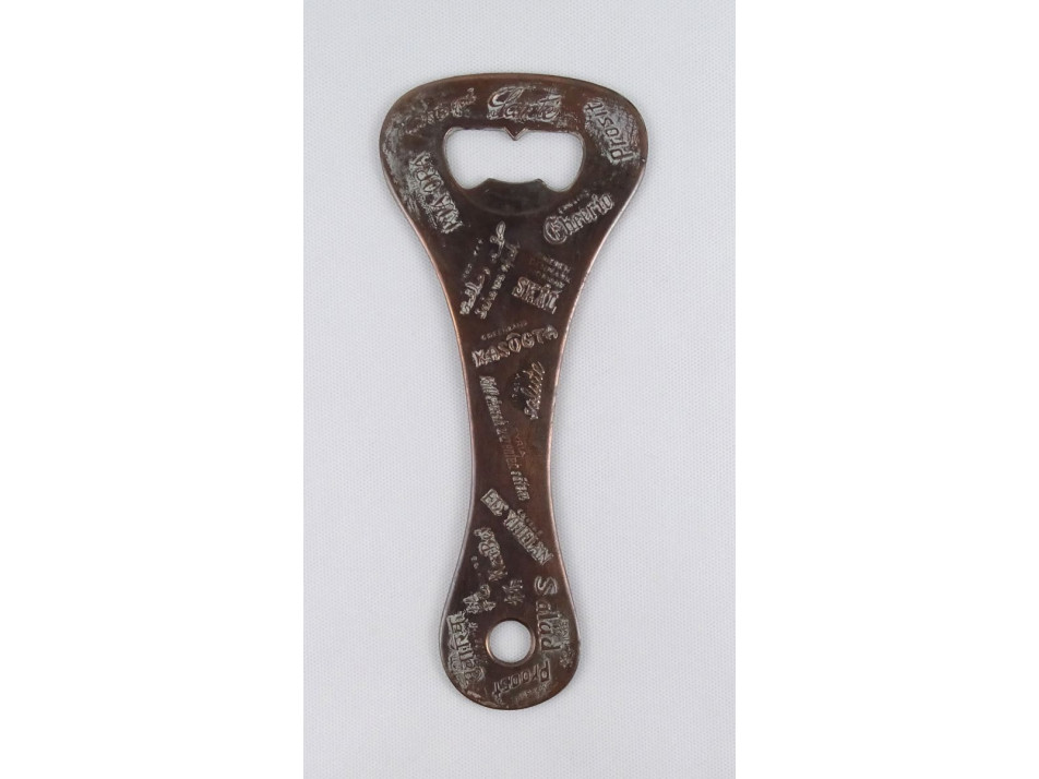 Régi, hatalmas méretű bronz színű, bronzzal futtatott fém sörnyitó. Mindkét oldala díszített.