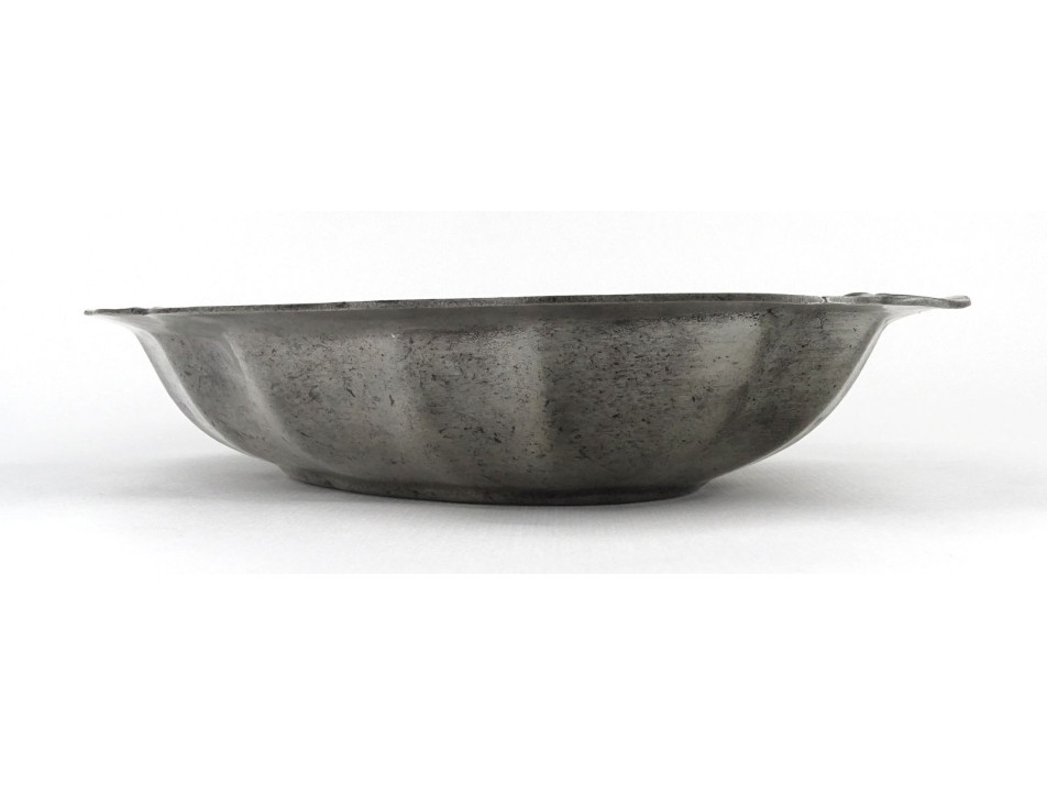 Régi nagyméretű ónból készült jelzett asztalközép kínáló tál, gyümölcskínáló tál.