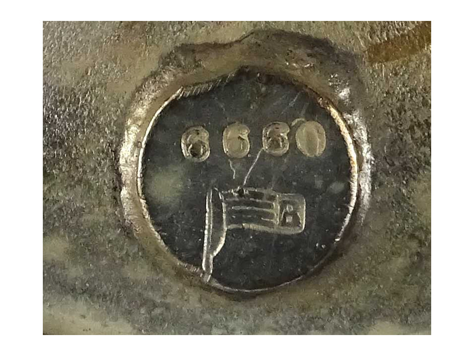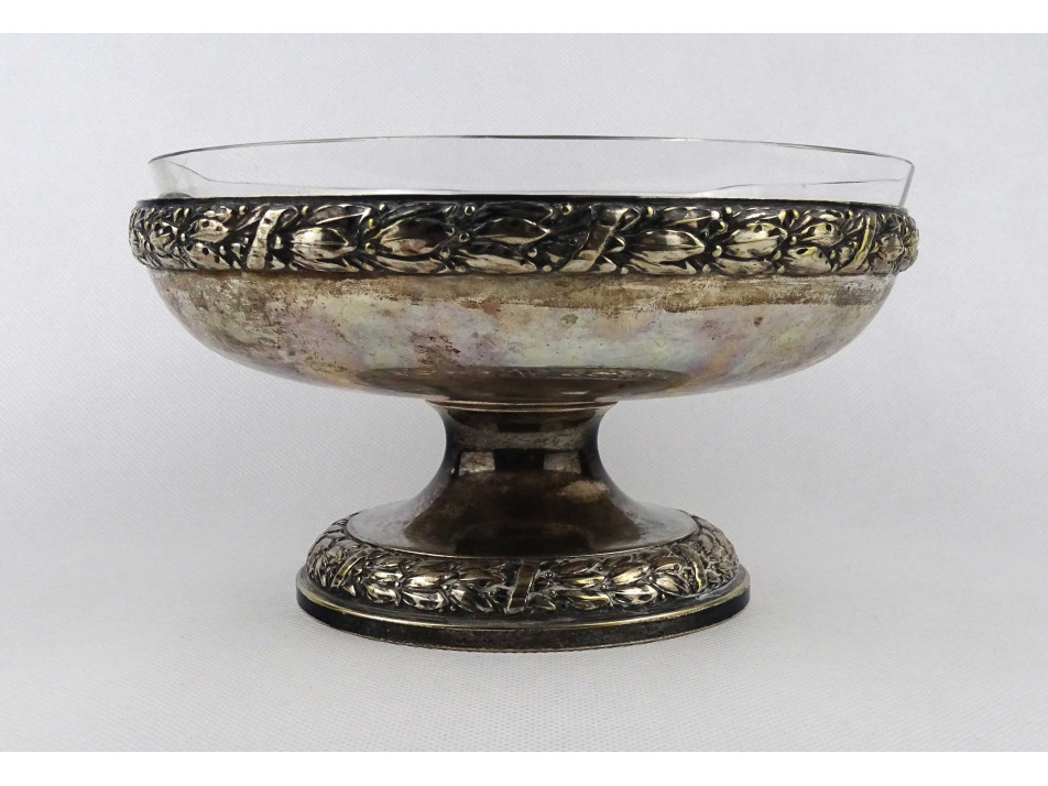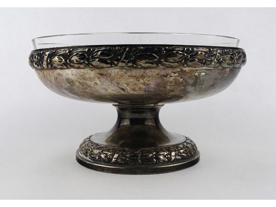 Antik üvegbetétes ezüstözött fém asztalközép gyümölcskínáló tál