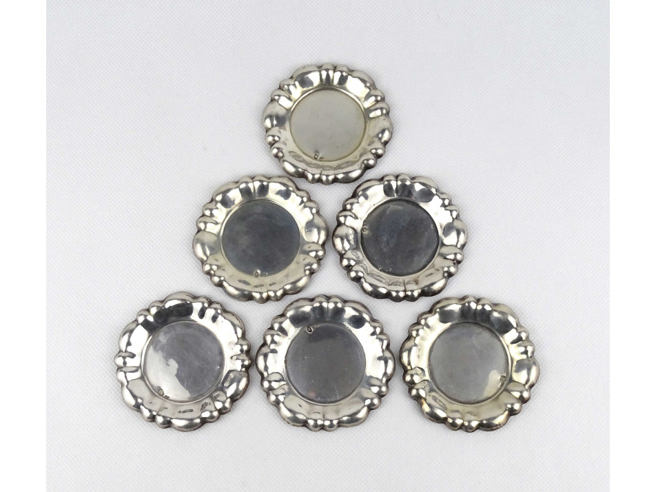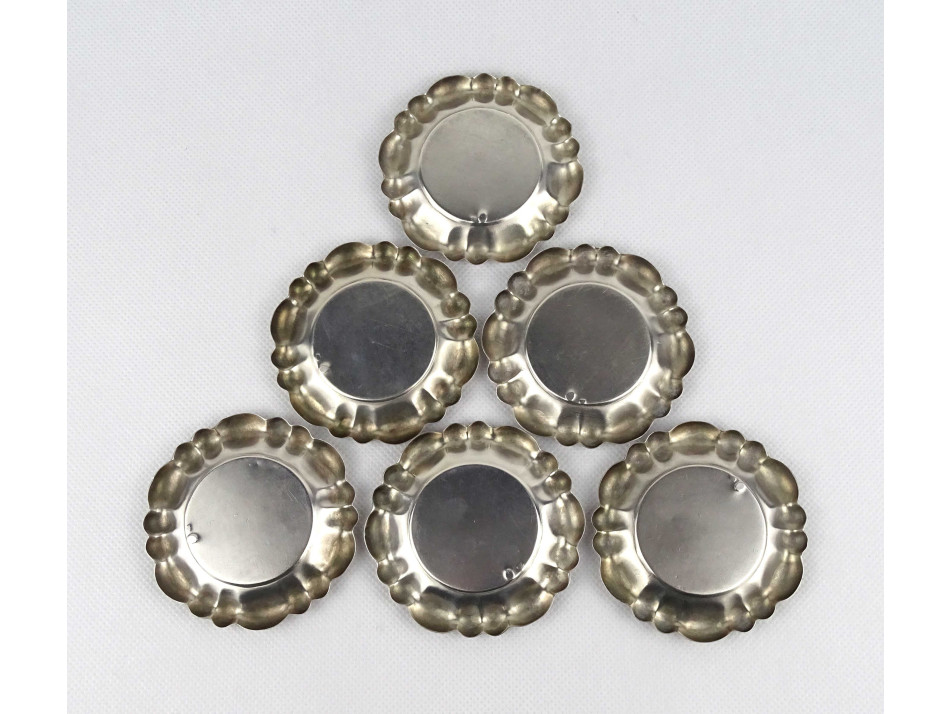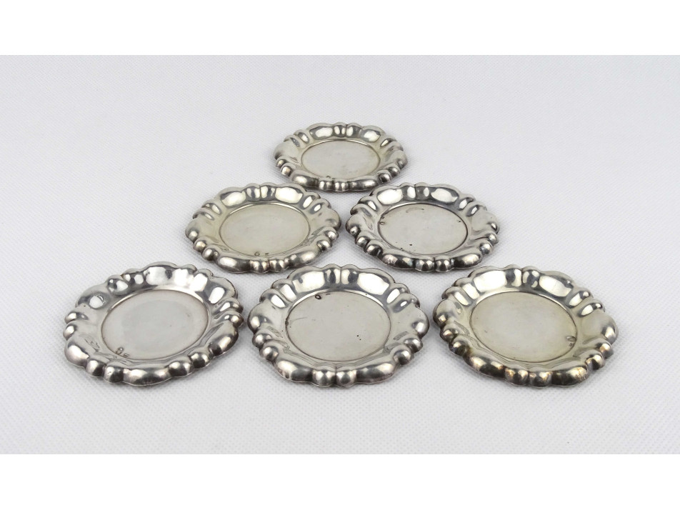 Régi 800-as finomságú ezüst kis tányér, kis tál készlet, 6 darab 102 g