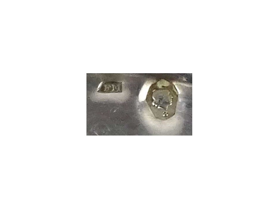 A tányérok aljába felülről beütve 1965-ig használt 3-as Diana fejes 800-as finomságjel, melette "FM" mesterjel található.
