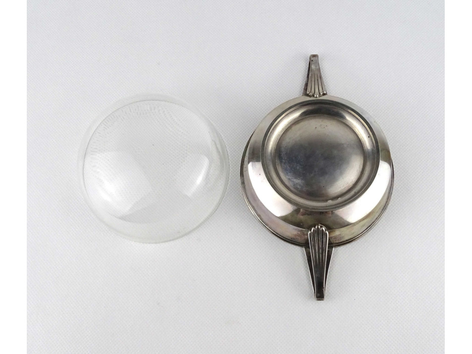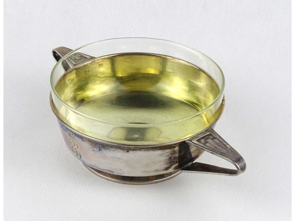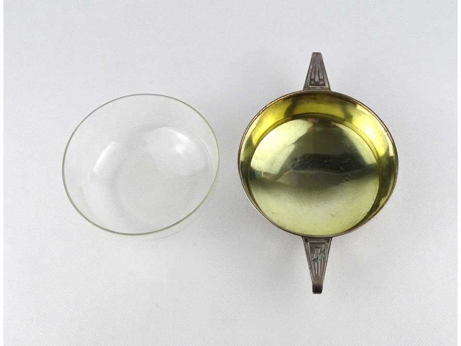 Antik monogramos üvegbetétes ezüst kínáló kosár kistál 164 g