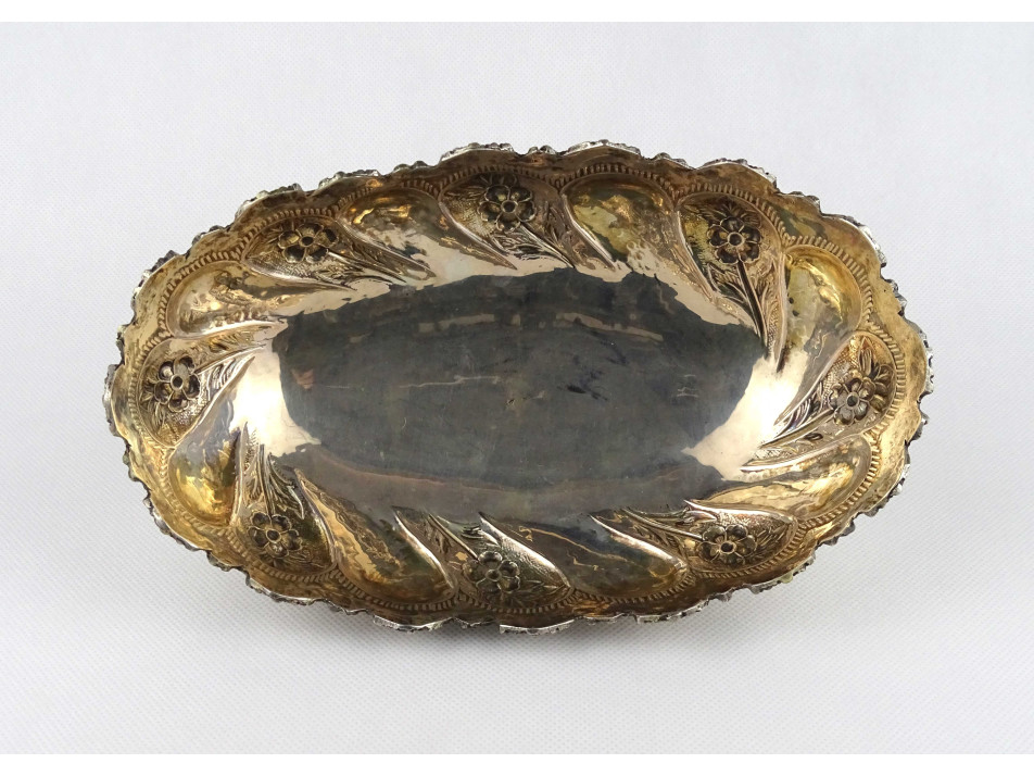 Antik 800-as finomságú virágdíszes ezüst asztalközép kínáló tál 302 g