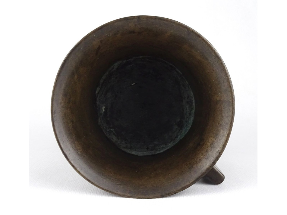 Antik, kisebb méretű bronz mozsár az 1700-as évek végéről. Egy füllel rendelkező patikai mozsár.
