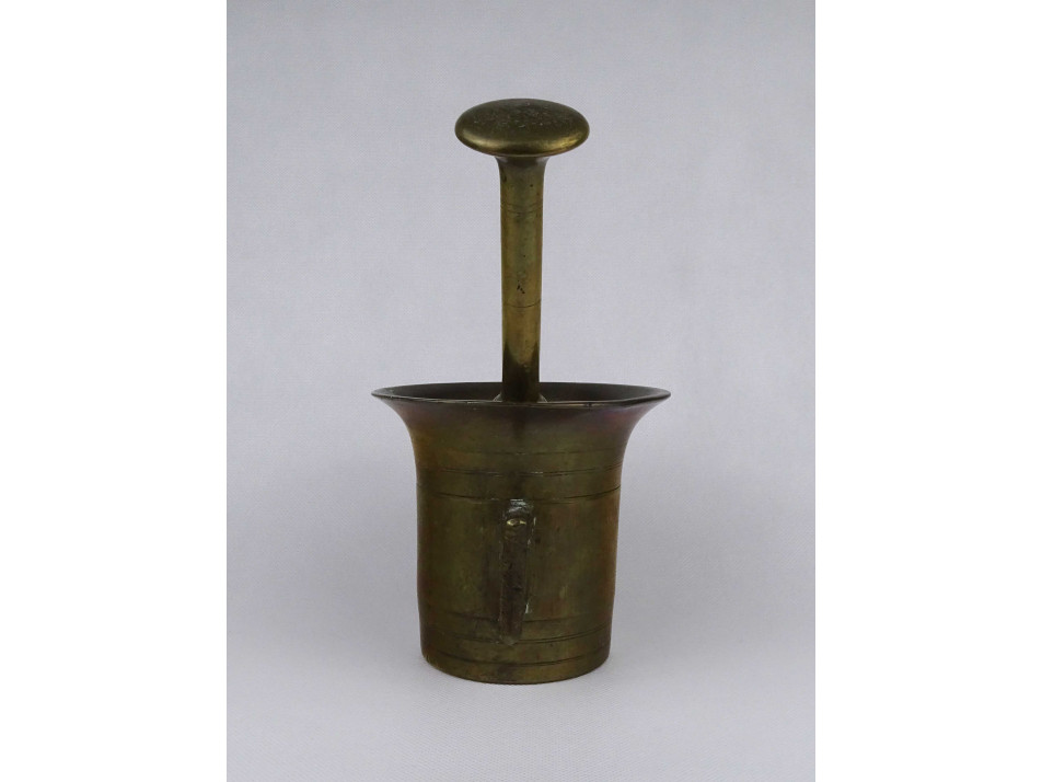Antik szögletes fülű réz mozsár törővel 2.67 kg