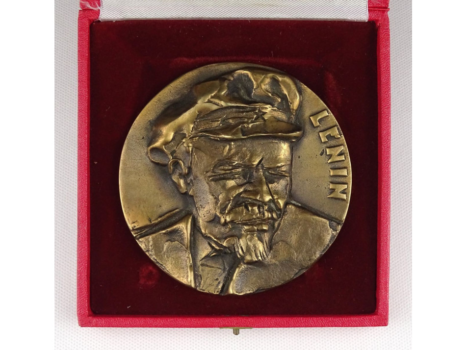 Eredeti díszdobozban található, plasztikus bronz plakett. Rajta Lenin portré.