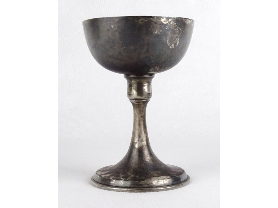Régi, patinás állapotú jelzett ezüstözött alpakka kávéházi kehely vagy gyertyatartó.