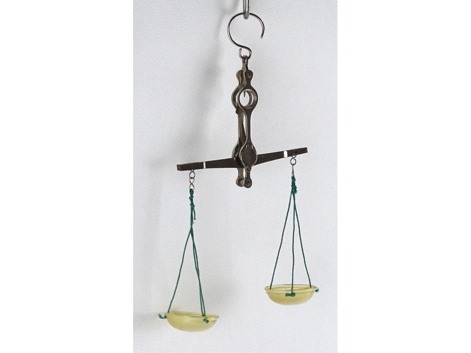 Régi kétkarú patika mérleg Bag Budapest 1941