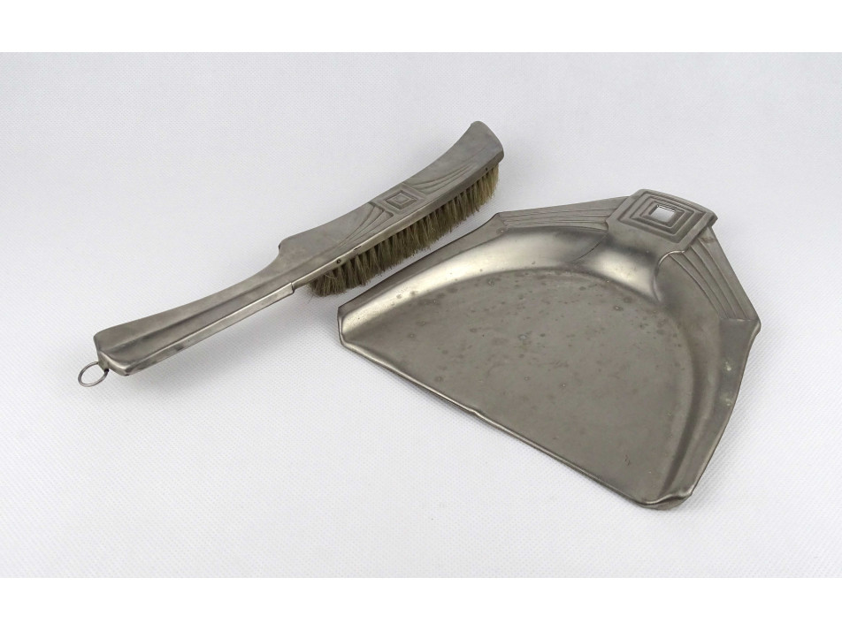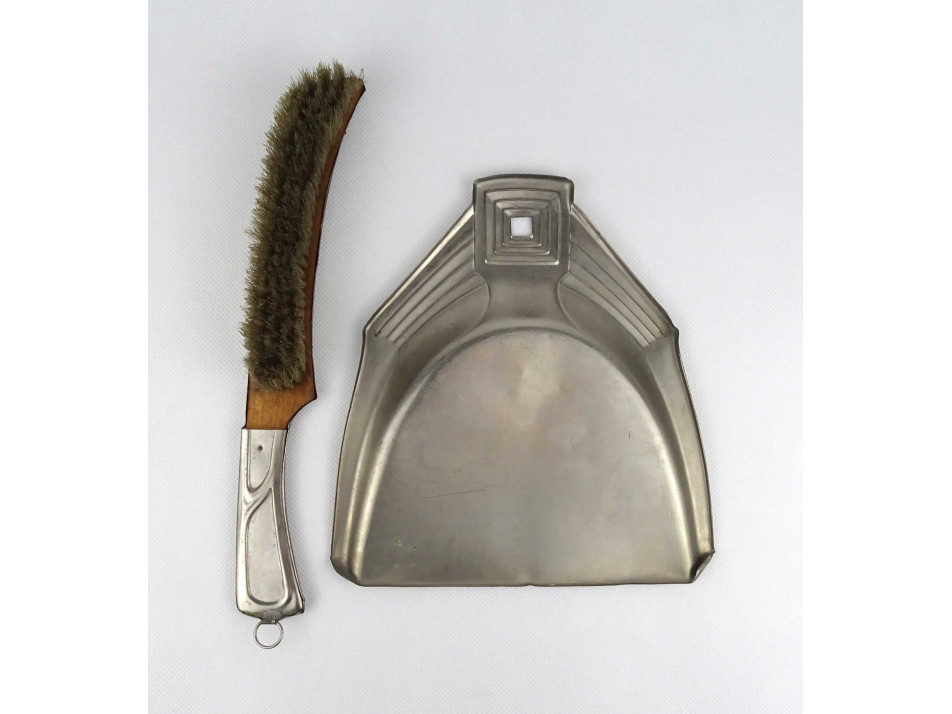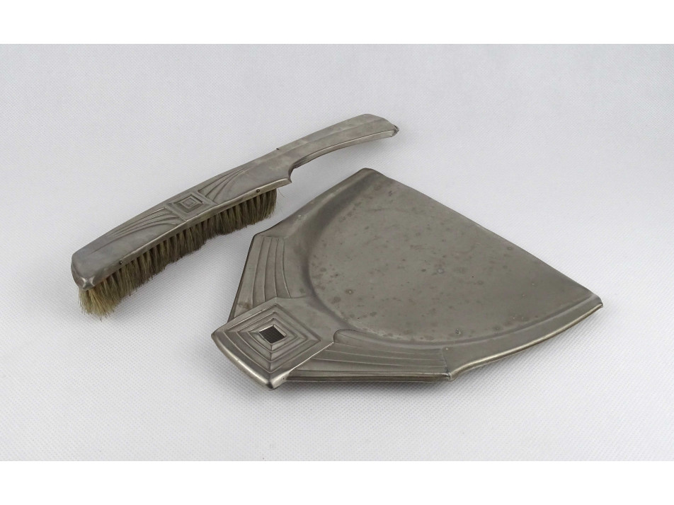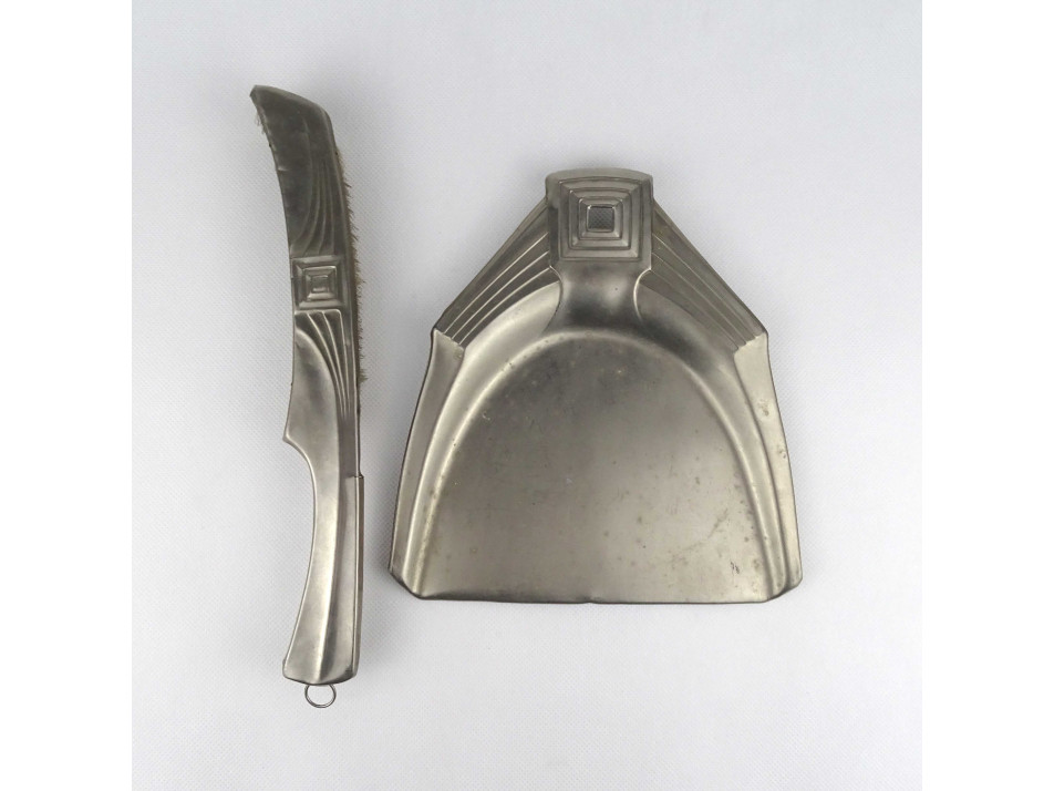 Régi, art deco stílusú fém asztali morzsalapát és morzsaseprű a XX. század első feléből.